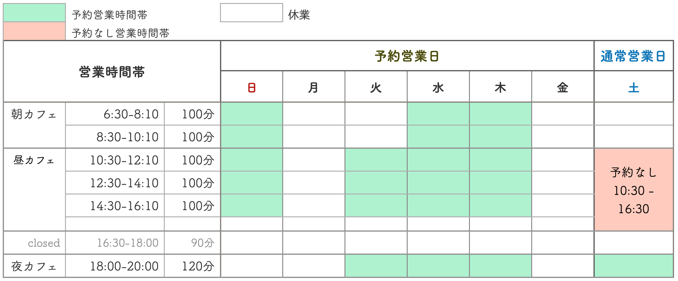 ※予約営業時間帯はご予約いただいた時のみの営業でご予約がない時は休業となります