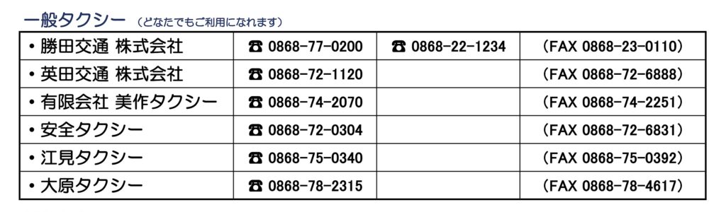 一般タクシー引用:美作市ホームページより